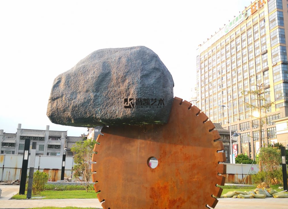 材質:齒輪耐候鋼板切割拼接、石頭鑄銅