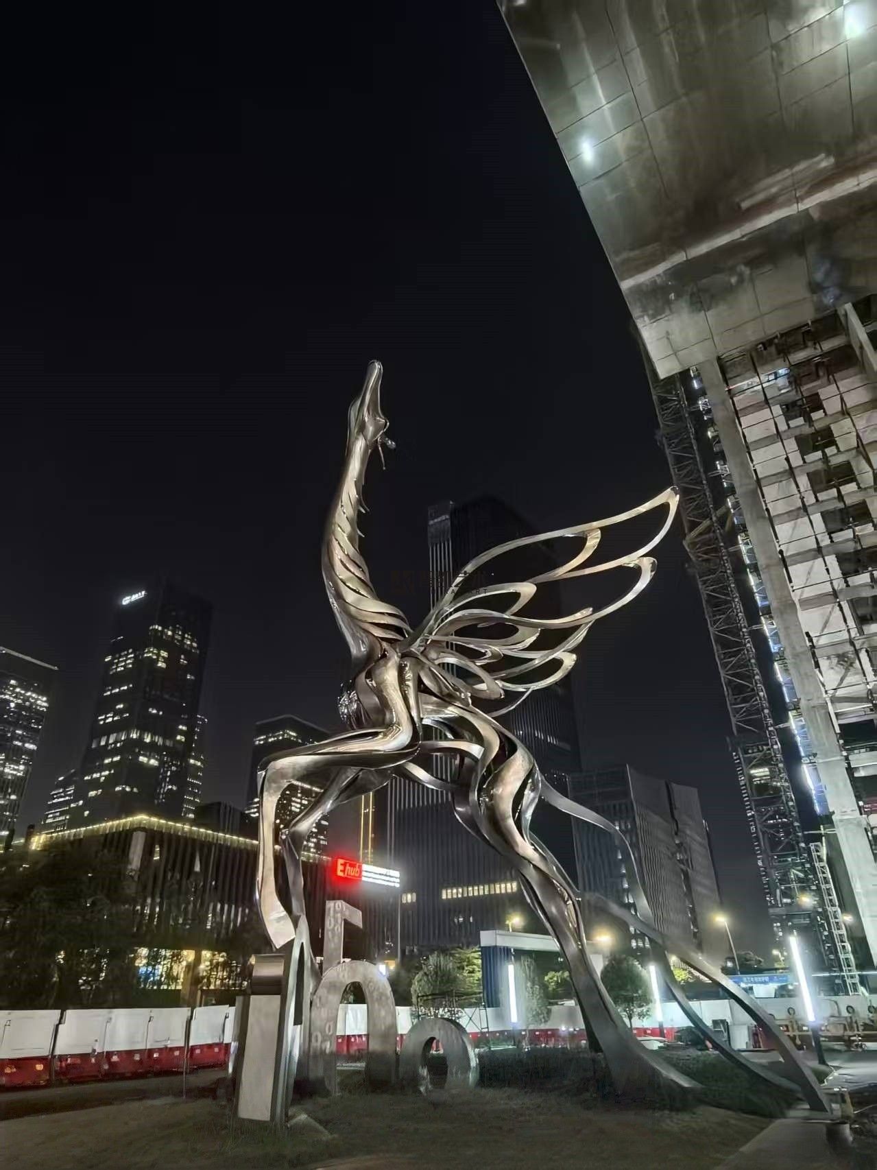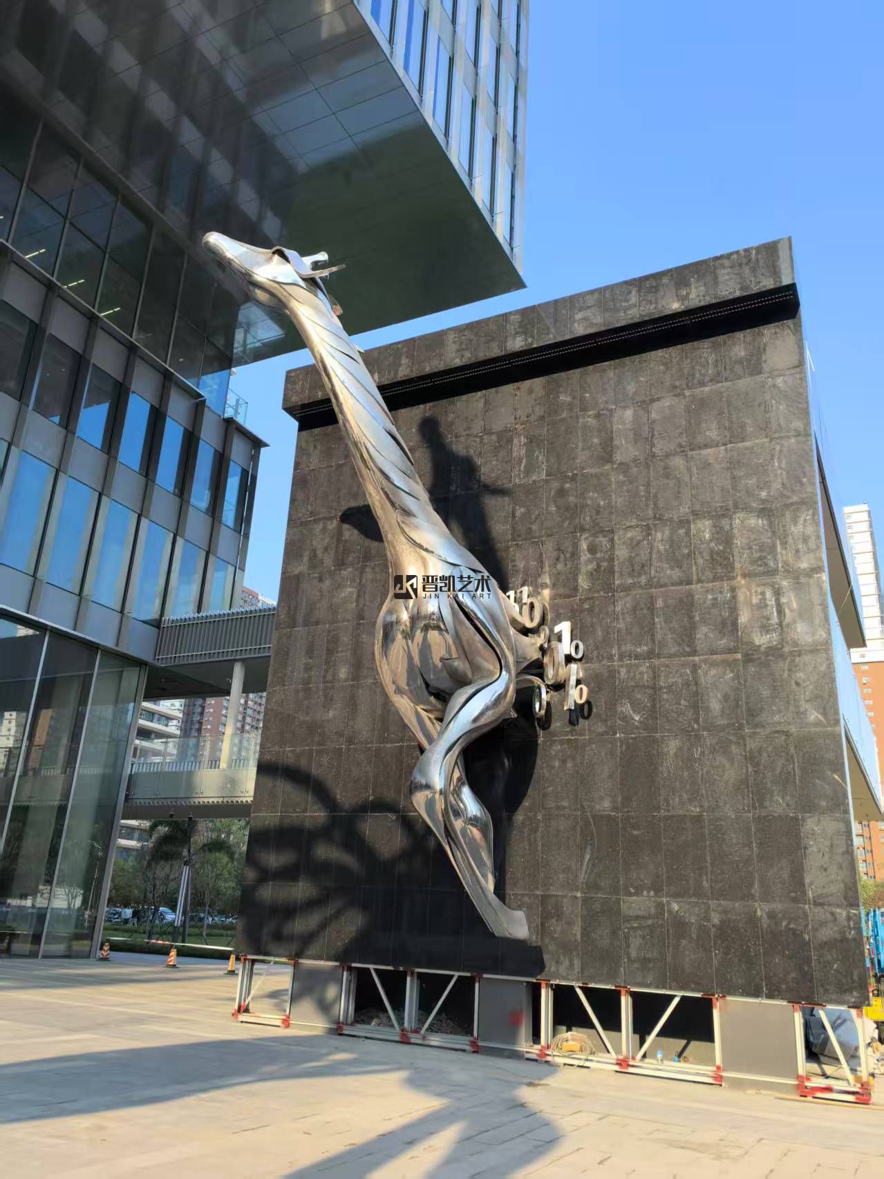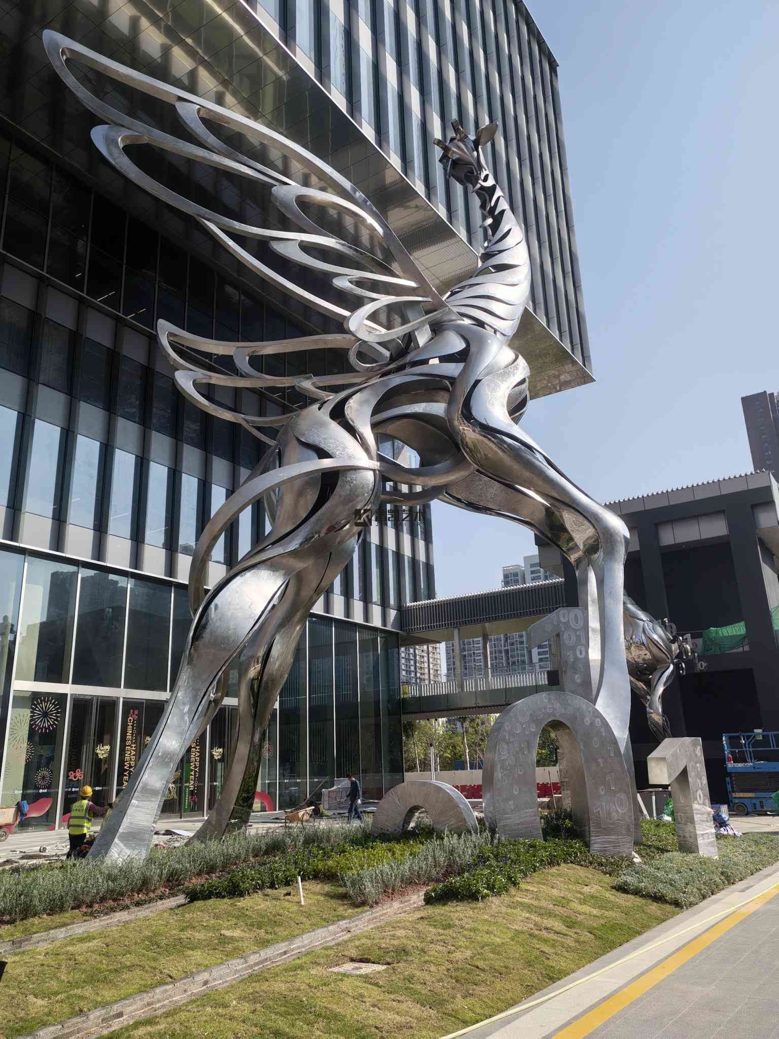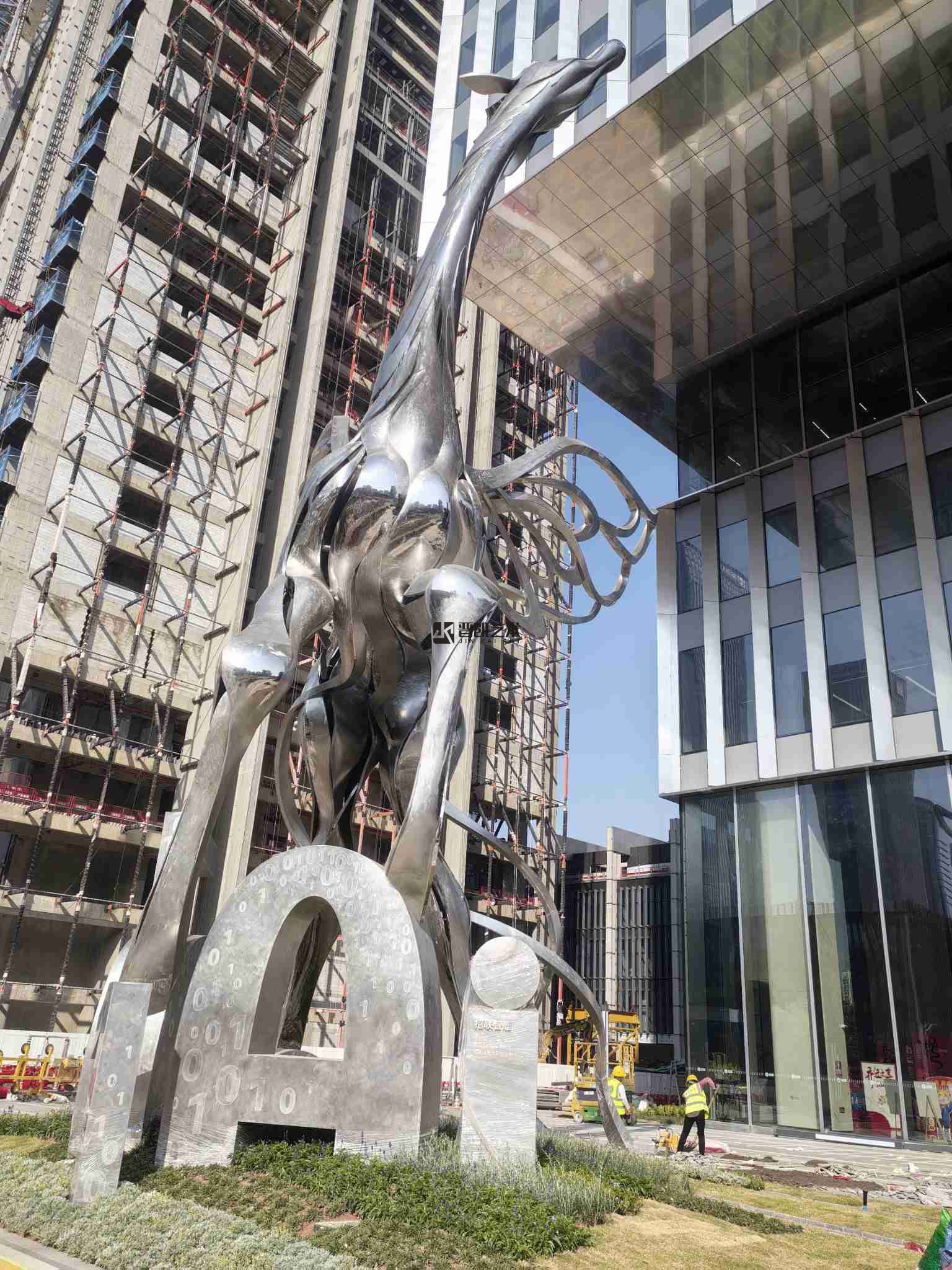 深圳前海招聯(lián)大廈前的不銹鋼《長頸鹿》雕塑已順利驗收,剛中藏柔,靜而蓄力。